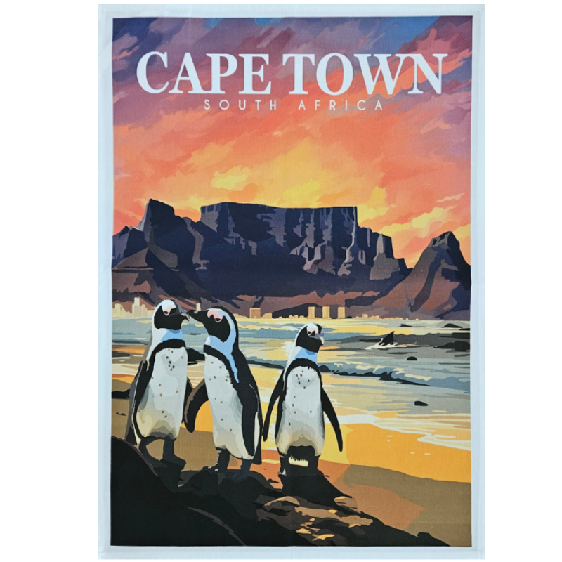 Cape Town Penguins tea towel with Table Mountain