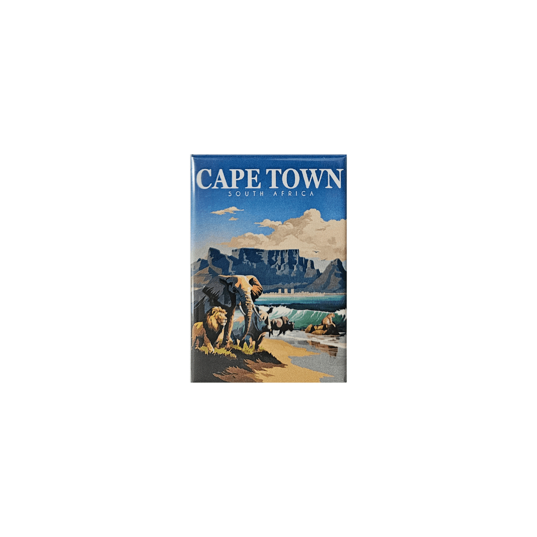 Our Cape Town Big Five magnet depicts the iconic Table Mountain and the infamous Big Five animals. Yes, we know that the Big Five don’t live on the beach but our creativity got the better of us. It’s the perfect Cape Town souvenir for friends or family abroad and small enough to fit into any bag.