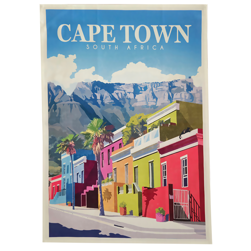 Our Cape Town Bo-Kaap tea towel depicts Table Mountain and the iconic, colourful houses of the Bo-Kaap. The perfect Cape Town souvenir!