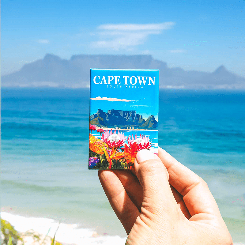 Our Cape Town Proteas magnet depicts the iconic Table Mountain and an array of indigenous flowers including the King Protea. It’s the perfect Cape Town souvenir for friends or family abroad and small enough to fit into any bag.