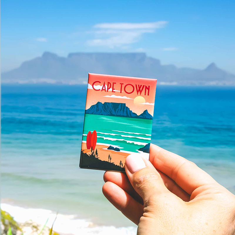 This is Cape Town on a magnet. The sun, the sea and Table Mountain = PARADISE! It’s the perfect Cape Town souvenir for friends or family abroad and small enough to fit into any bag.