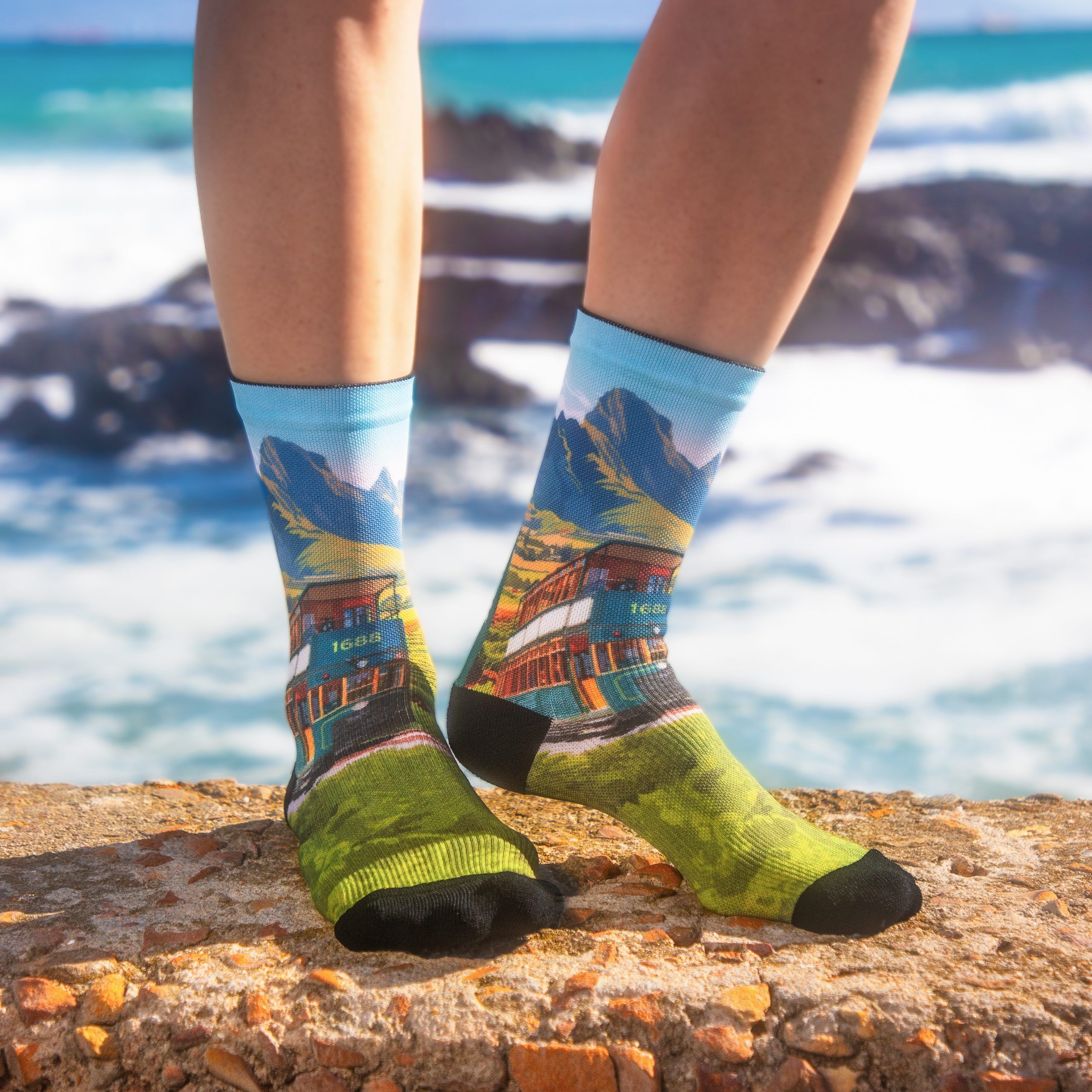 Our original design Franschhoek socks will definitely elevate your sock game! They make the perfect Franschhoek souvenir for friends and family abroad and are guaranteed to make a statement.