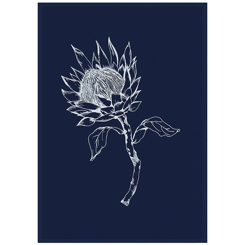 NAVY TEA TOWEL WITH KING PROTEA PRINT