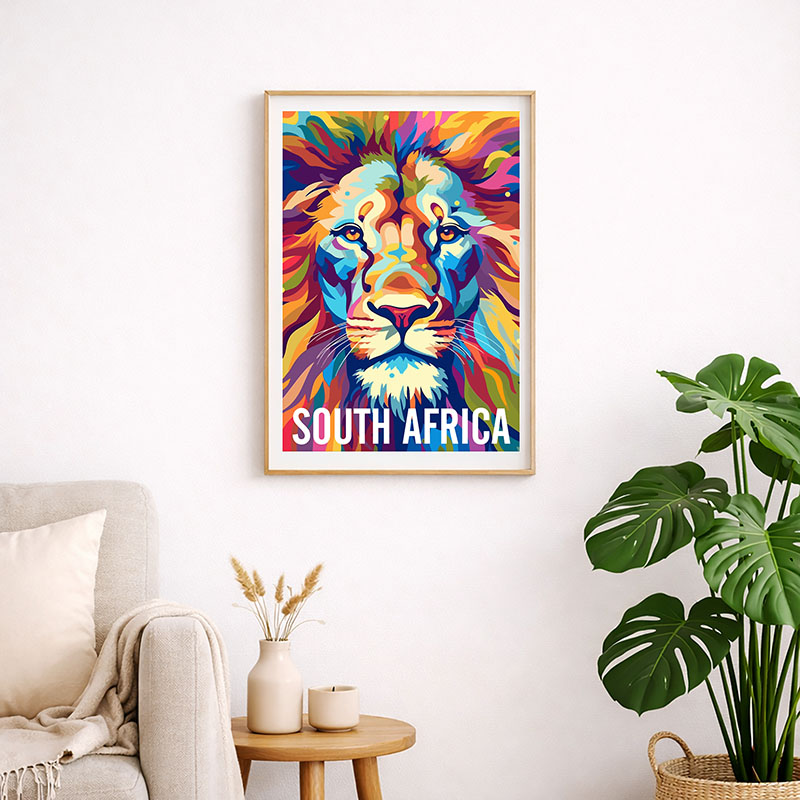 Take a piece of South Africa home with this South Africa Lion art print, featuring a bold and colourful illustration that captures the spirit of Africa.